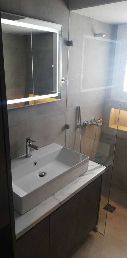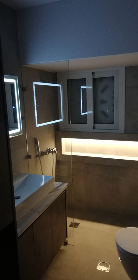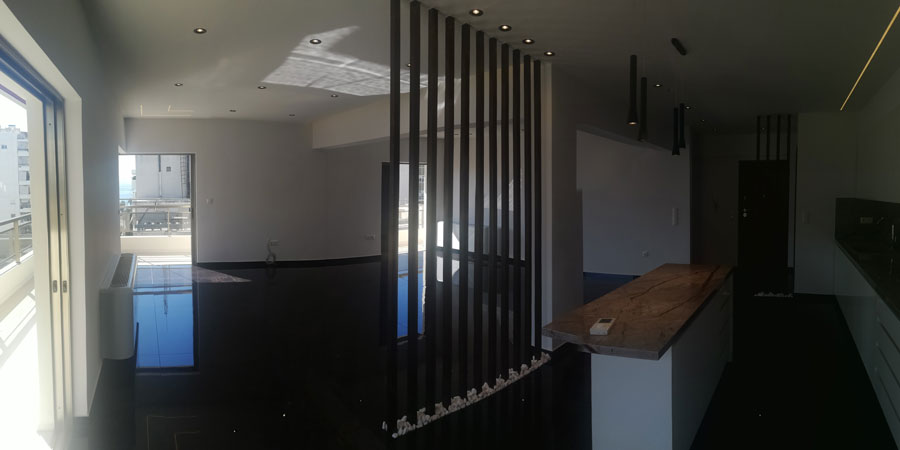 Ανακατασκευή διαμερίσματος στο Φάληρο Αττικής. Νέα διαρρύθμιση με την εσωτερική μετατροπή του χώρου, πλήρη μηχανολογική εγκατάσταση & ενεργειακή αναβάθμιση του ακινήτου.