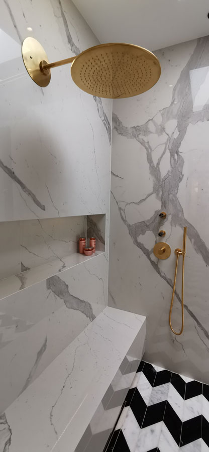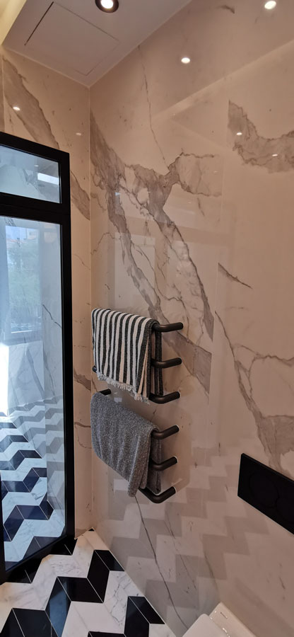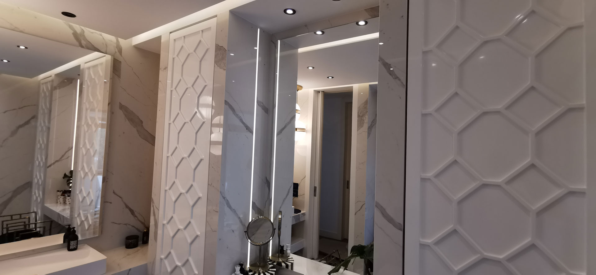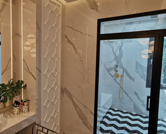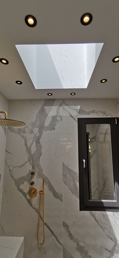 Ανακατασκευη μπανιου κατοικιας στην Βουλα Αττικης. Πληρη μηχανολογικη & αρχιτεκτονικη μετατροπη του χωρου με την δημιουργια custom made επιπλων.